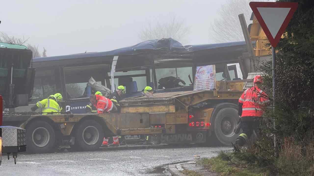 Sønderjylland : Ribevej ved Hovslund Stationsby er total spærret efter ulykke hvor en lastbil og bus er kørt sammen i meget tæt tåge onsdag eftermiddag.