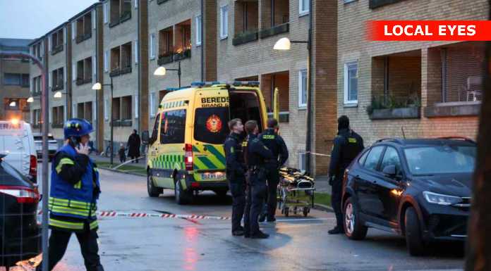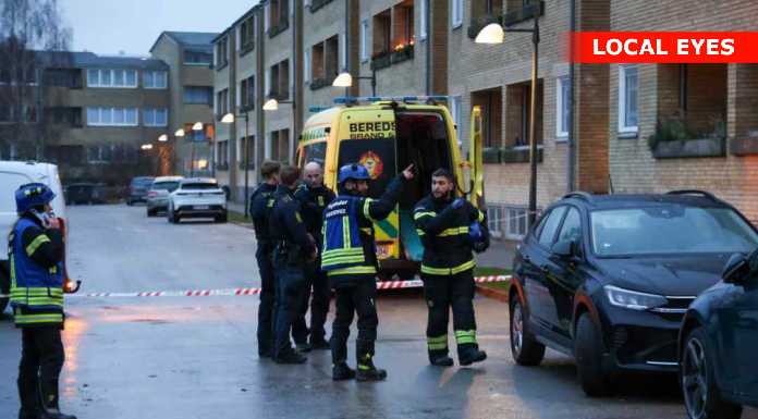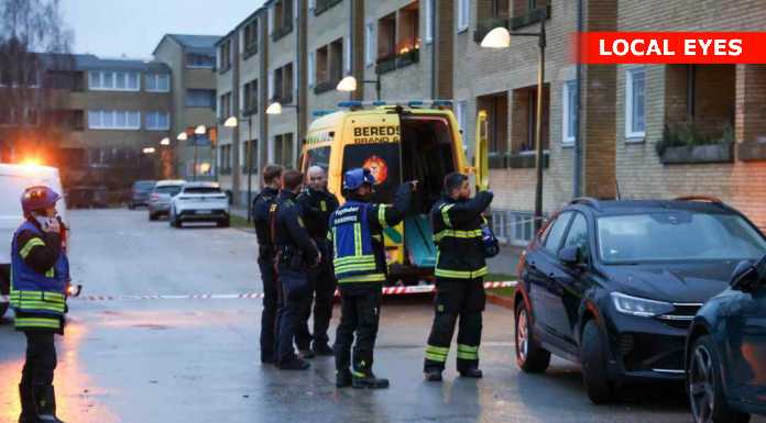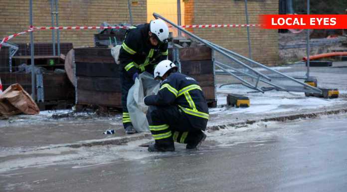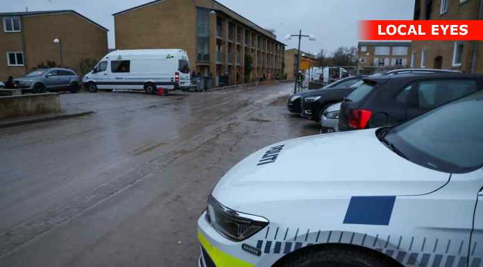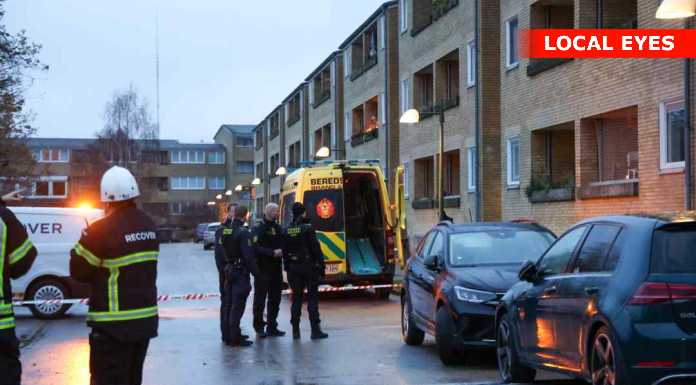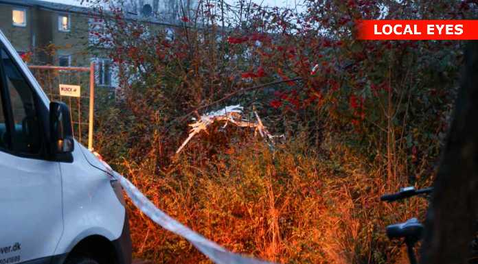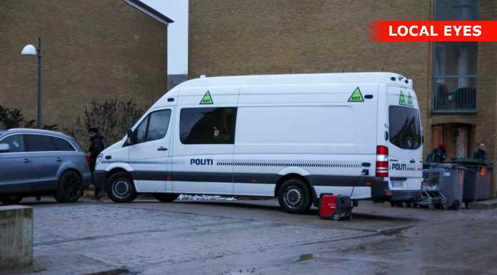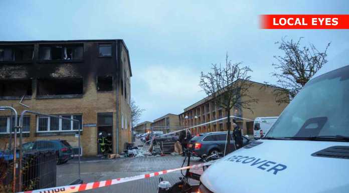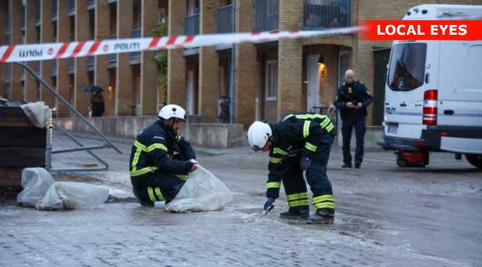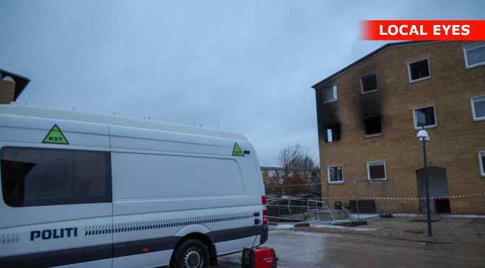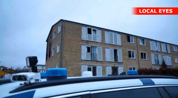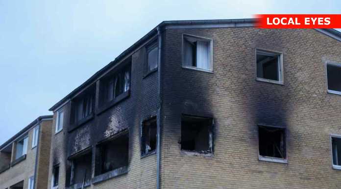 På stedet kan det ses at vinduerne fra en af lejlighederne er blevet trykket ud, og at persienner ligger i hækken overfor.