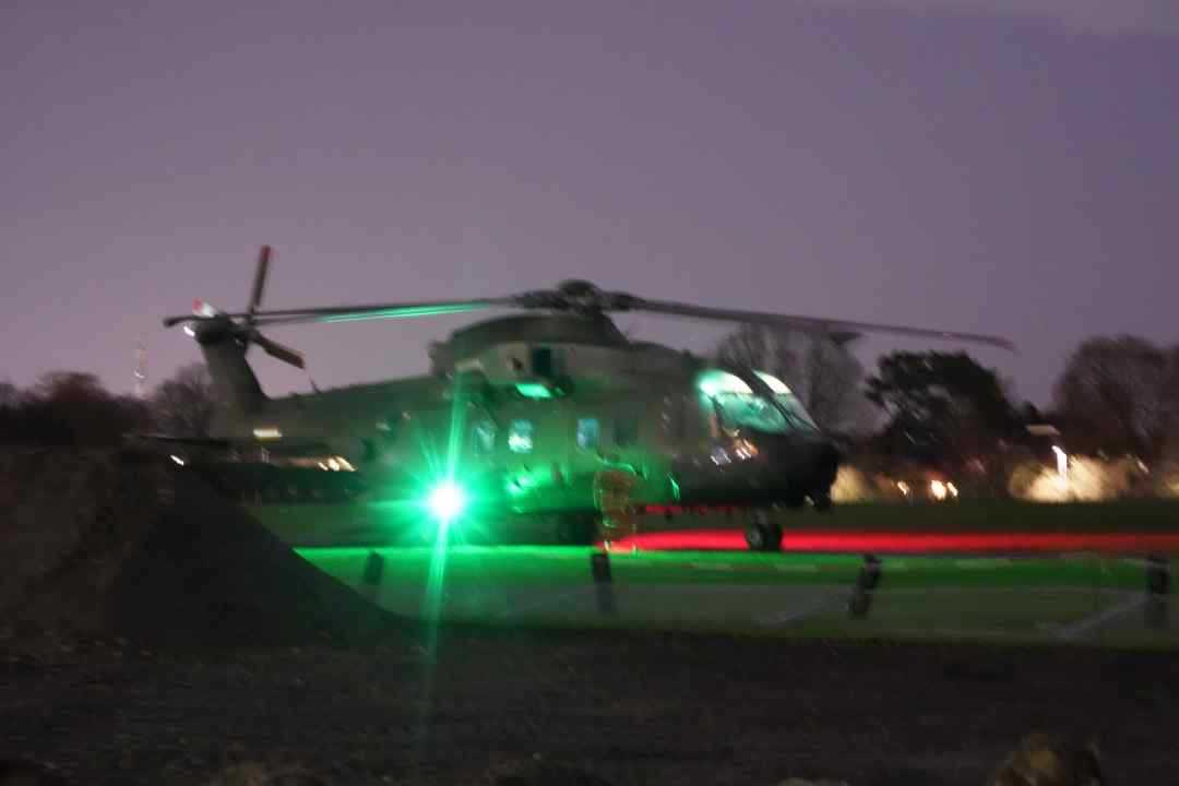 I Odense blev en stille søndag aften ved 22 tiden afbrudt af lyden fra en lavtflyvende helikopter. Den landede ude på Dyreskuepladsen hvor en ambulance var fremme. Efterfølgende lettede helikopteren igen.