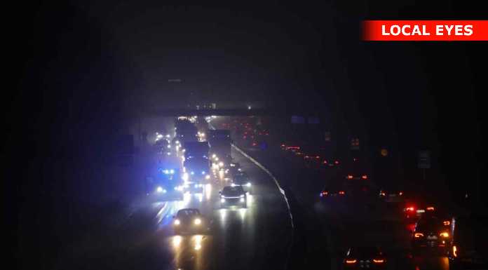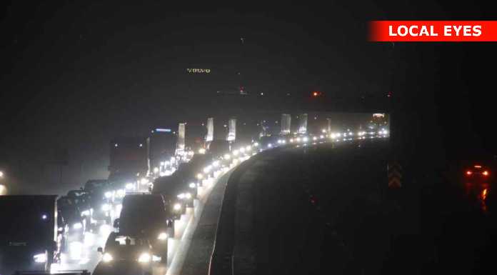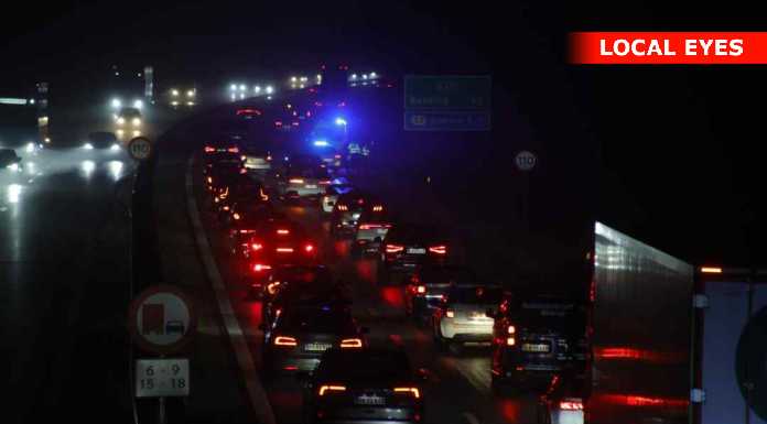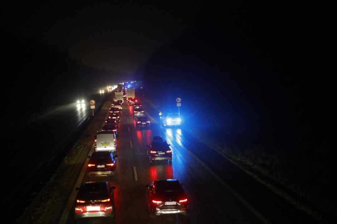 På stedet kunne man se et uheld i midterrabatten, og området var endnu ikke sikret. Trafikanter blev derfor opfordret til at nedsætte hastigheden og være ekstra opmærksomme, mens redningsmandskab var på vej.