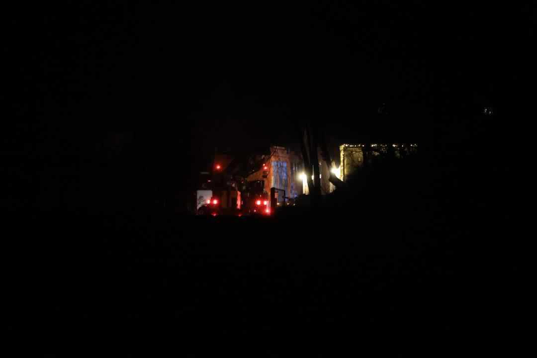 En traktor blev hentet af et bjergningskøretøj og kørt væk.