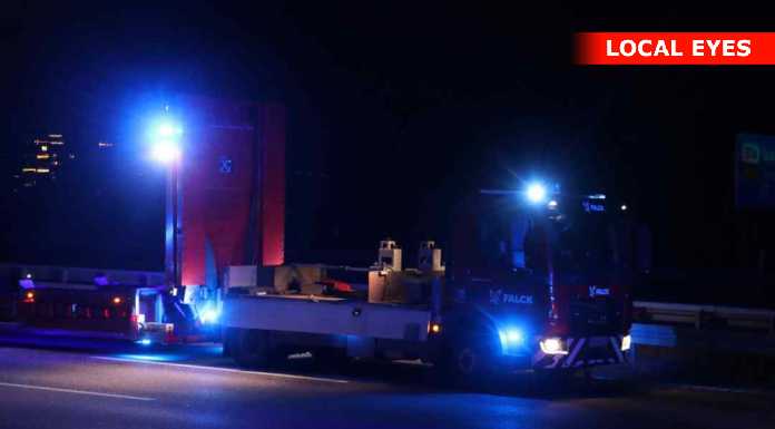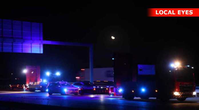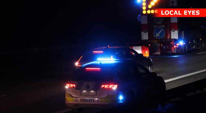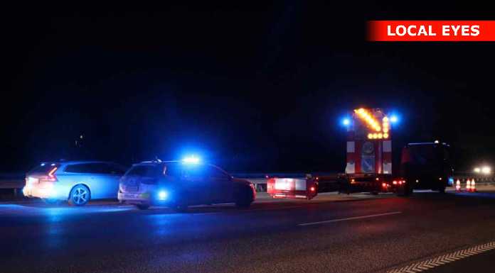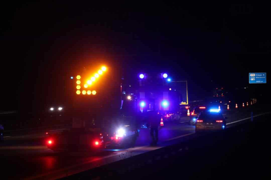 Nødsporet, første og anden vognbane var spærret, men kort efter vores ankomst rykkede man afspærringen ud i tredje og fjerde vognbane.