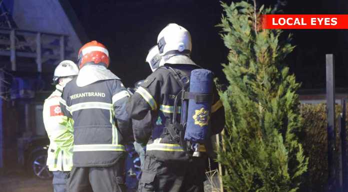 Da fotografen ankom til stedet, var brandvæsnet i gang med efterslukning. Mandskabet gennemgik boligen med termometer for at måle temperaturer og sikre, at der ikke gemte sig varmeudvikling.