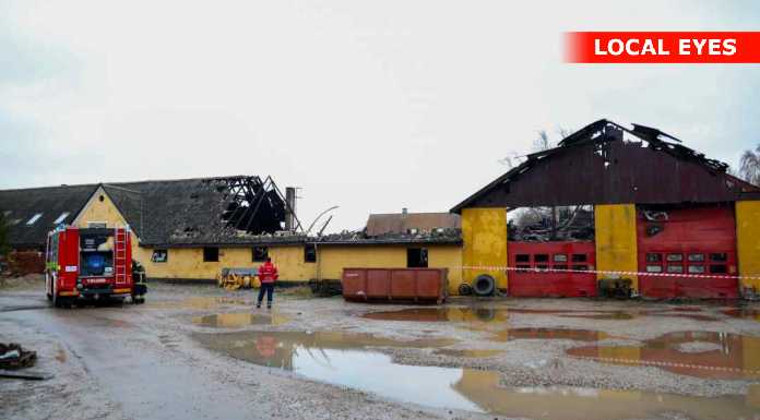 Via 1-1-2 indløb meldingen om brand på gården ca 02:15 natten til søndag, lyset fra flammerne kunne ses på afstand.