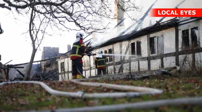 Mandag formiddag omkring klokken 10:44 indløb meldingen om en kraftig brand på Løgeskov 48 på Fyn, hvor et hus endte med at brænde helt ned til grunden.