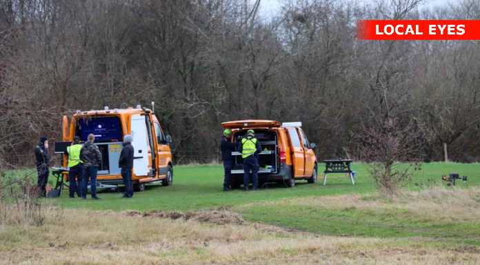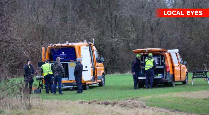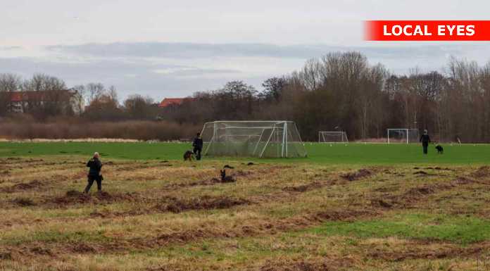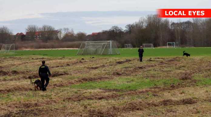 Politiet og Beredskabsstyrelsen er fredag formiddag talstærkt til stede ved Utterslev Mose / Grønnemose Alle – bl.a. med hunde og droner.