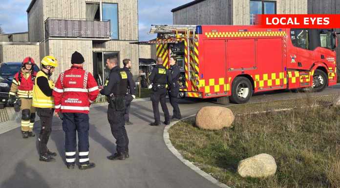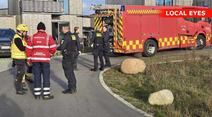 Der blev omkring kl. 11.25 slået alarm til 1-1-2, hvorefter brandvæsen og politi hurtigt var fremme.