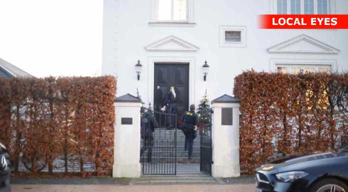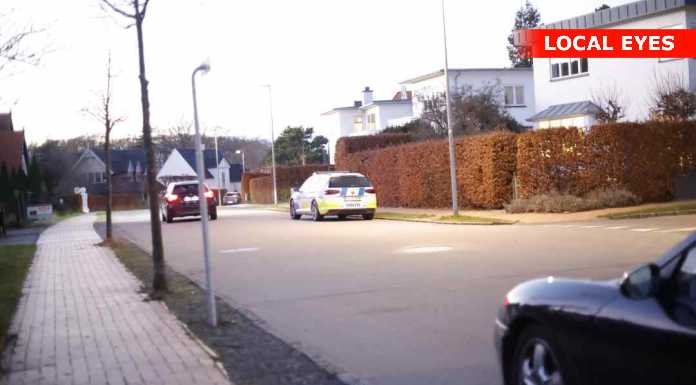 Da fotografen ankom, var politiet til stede. En brandbil kørte kort efter fra området.