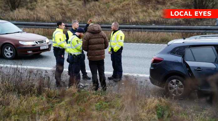 Uheld på motorvej midt i juletrafikken. Motorvejen kortvarigt spærret