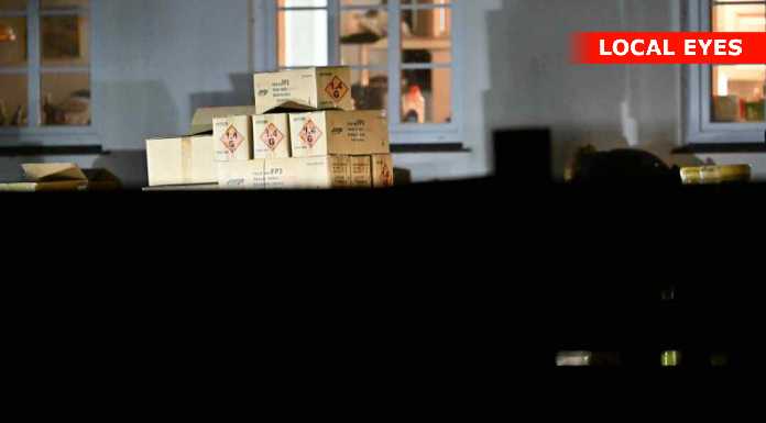 STORVORDE : Politiet har beslaglagt flere hundrede kilo ulovlig fyrværkeri i en privat bolig. En 35 årig er anholdt og sidder til afhøring.