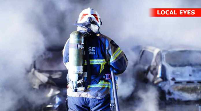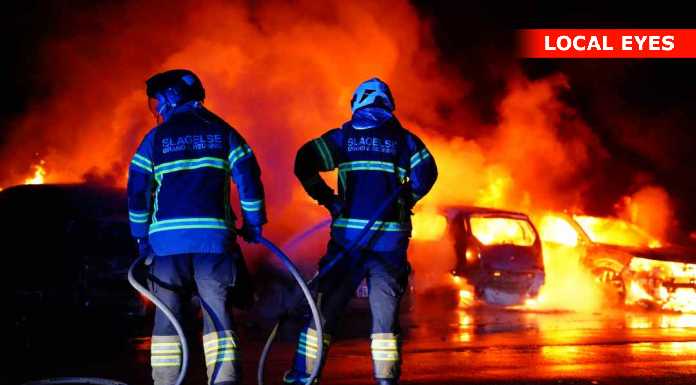 Vidner havde set en person løbe fra stedet med en dunk i hånden, Politiet ankom og fik forklaringer fra vidner .
