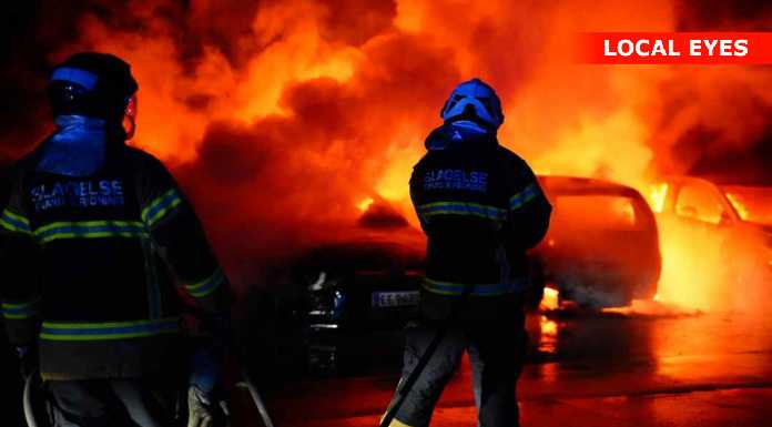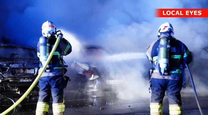 Der var ikke meget at stille op imod flammerne i de fire biler med det mandskab der ankom først til stedet.