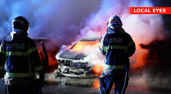 Blot 15 minutter senere indløb der en melding om tre biler var overtændt på Stationsvej i Dianalund.
