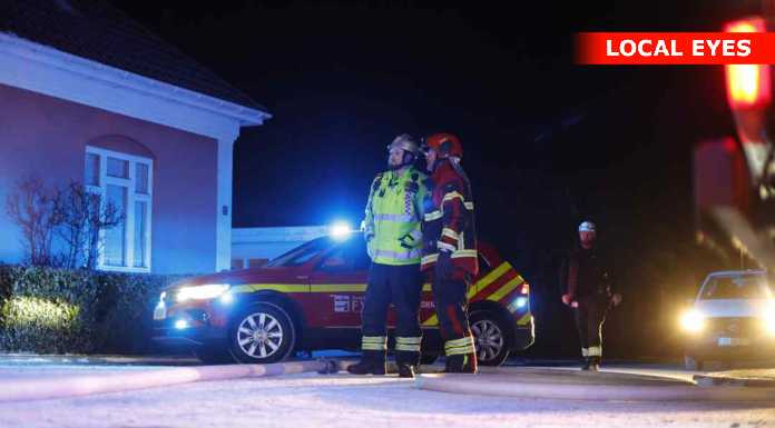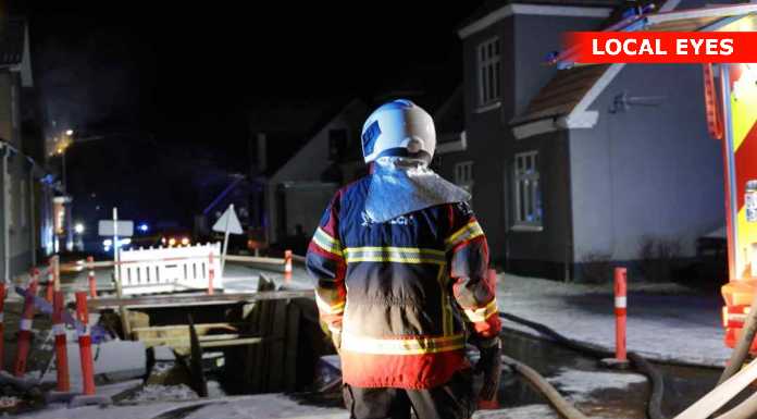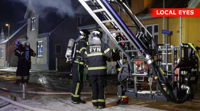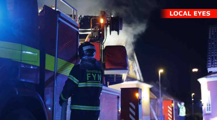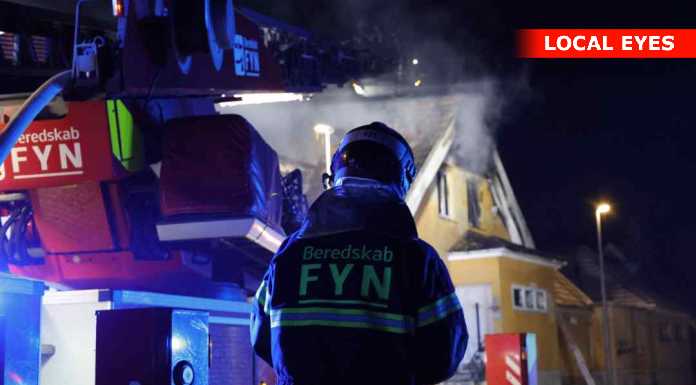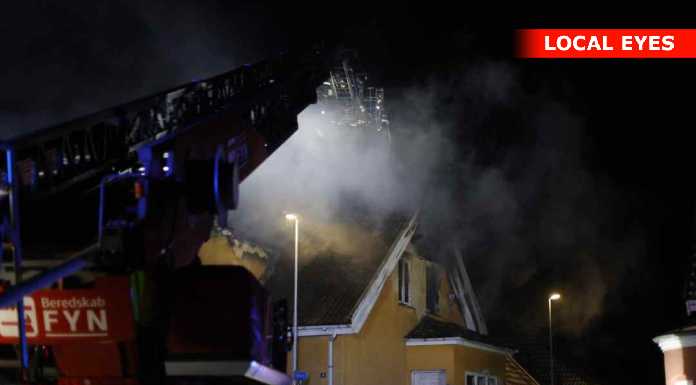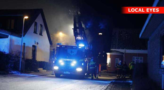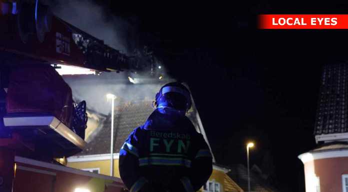 “Vi og det øvrige beredskab håndterer en brand i en forladt villa i Aarup. Bygningen er overtændt. Ingen fare for spredning. Den kraftige røg på stedet er hovedsagelig damp pga. kulden. #politidk”