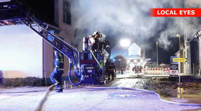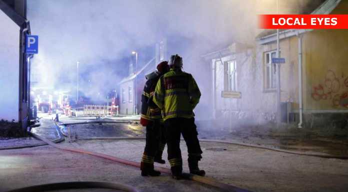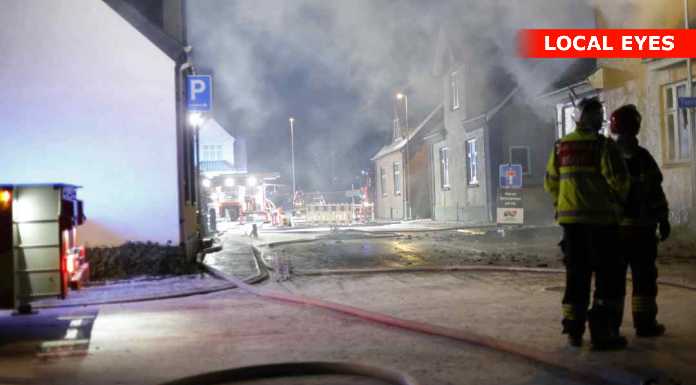 På stedet var der kraftig røgudvikling og markant røglugt. Der var ikke synlige flammer, men mange gløder i bygningen. Under slukningsarbejdet kunne der høres ting falde ned fra taget, mens brandvæsenet arbejdede med stigevogn og sprøjtede vand ovenfra.