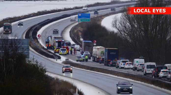 Slagelse : en lastbil er mandag formiddag snurret rundt erter at have ramt autoværnet på Vestmotorvejen ca 1 km før Vemmelev. Motorvejen har været spærret i et stykke tid men klokken 11:30 har man åbnet spor forbi uheldet. Trafikanter opfordreres til at finde alternativ ruter…