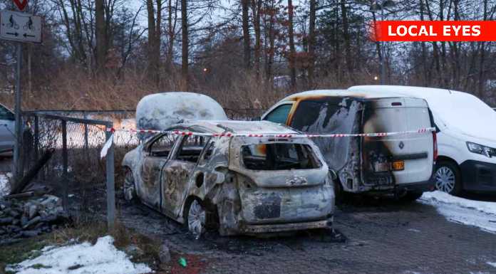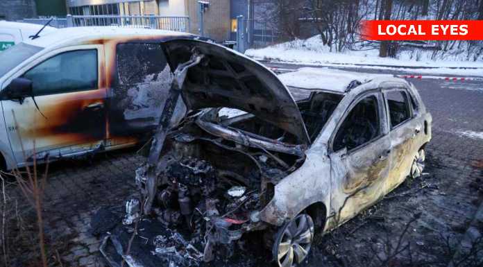 Bilen er udbrændt og den parkerede bil ved siden af har også taget skade.