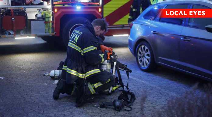“Man kunne se, at brandvæsenet netop var færdige, da slanger og udstyr blev pakket sammen.”