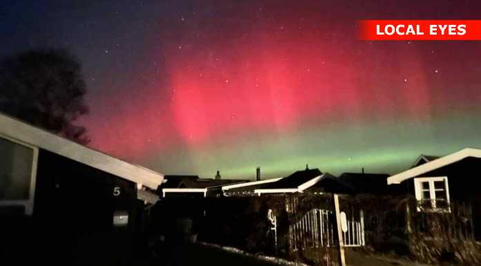 Det grønne og rødlige skær prydede nattehimlen og skabte et sjældent syn, som mange fynboer var hurtige til at dele billeder af.