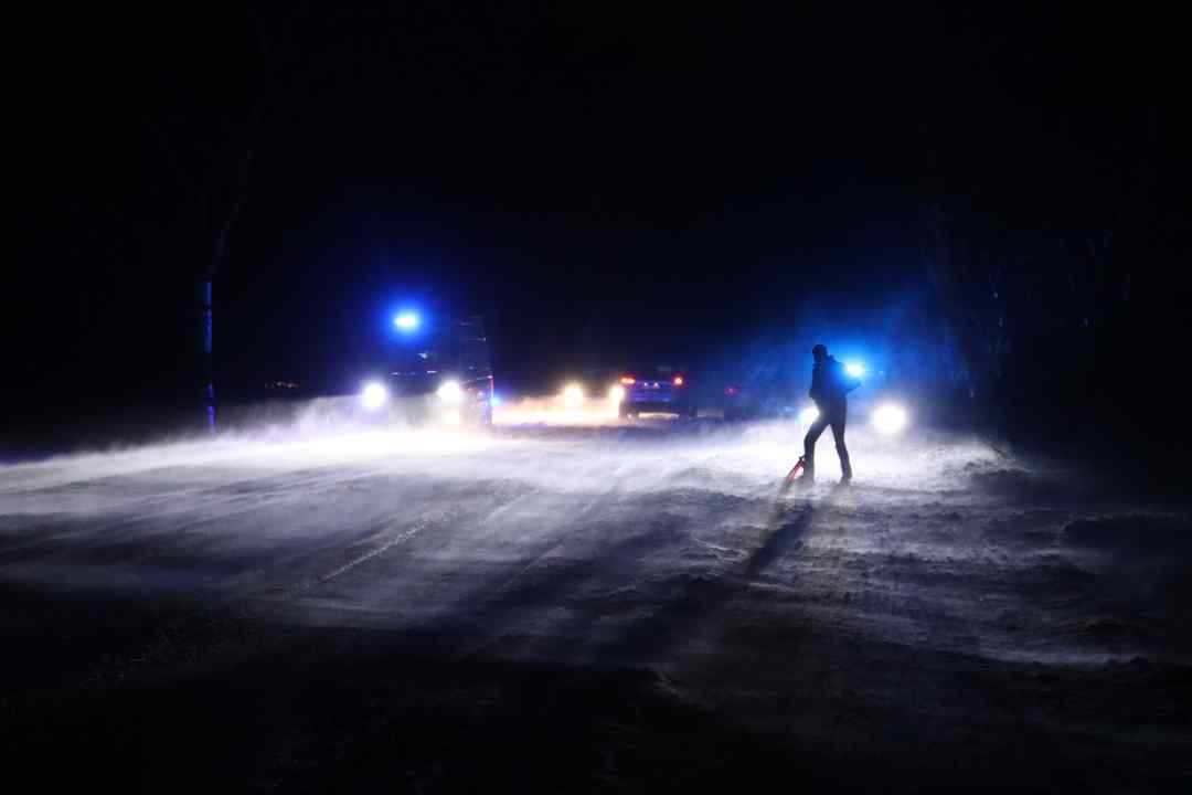 På strækningen er der pt kraftig snefygning, og sneen ligger sig på vejen.