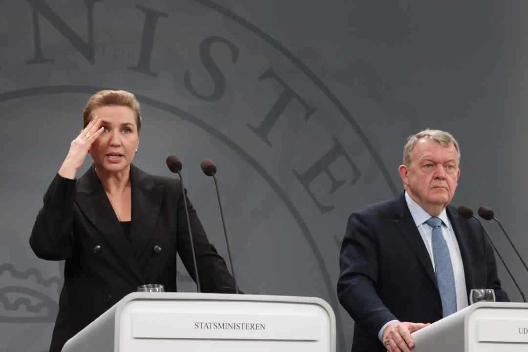 På pressemødet deltager statsminister Mette Frederiksen (Soc.dem), vicestatsminister og forsvarsminister Troels Lund Poulsen (Venstre), udenrigsminister Lars Løkke Rasmussen (Mod.) og integrationsminister Rasmus Stoklund (Soc.dem.).