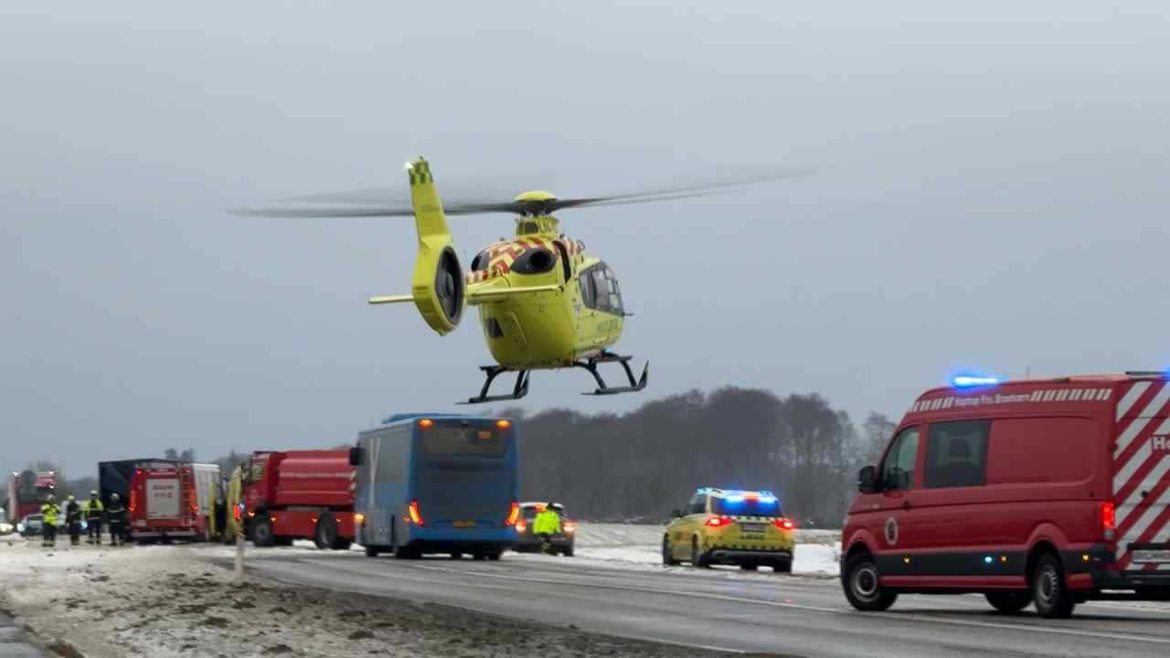 Sønderjylland: Hoptrup Hovedgade mellem Hoptrup og Haderslev er lige nu helt spærret efter en voldsom trafikulykke fredag eftermiddag.