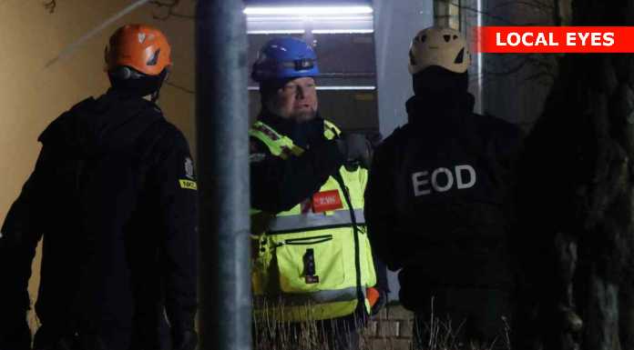 Localeyes var på stedet og observerede en opgang, hvor noget tydeligt var blevet sprunget inde i bygningen. Flere vinduer og indgangspartier var blæst ud, og der lå store mængder glasskår spredt over området. Flere vinduer hang løst ned fra bygningen, og skaderne fremstod omfattende og koncentreret omkring én lejlighed.