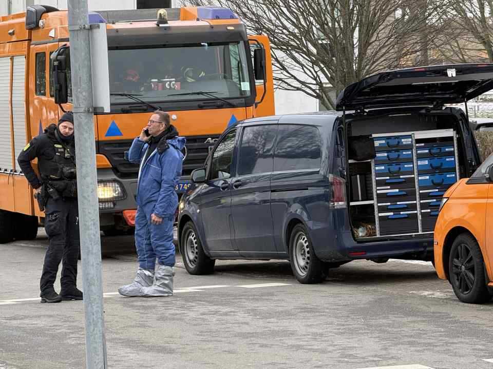 Politiets teknikere og Forsvarets bomberyddere er søndag formiddag tilstedet i Korsløkkenparken i Odense SØ, hvor der natten til søndag fandt en eksplosionsagtig brand sted