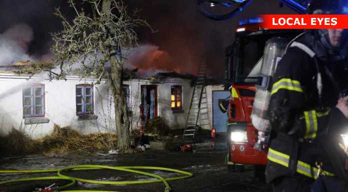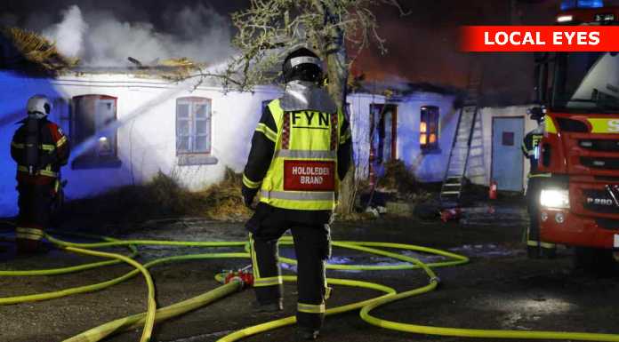 Tirsdag klokken 17.26 udbrød der brand i en stråtækt ejendom i Brylle syd for Odense.