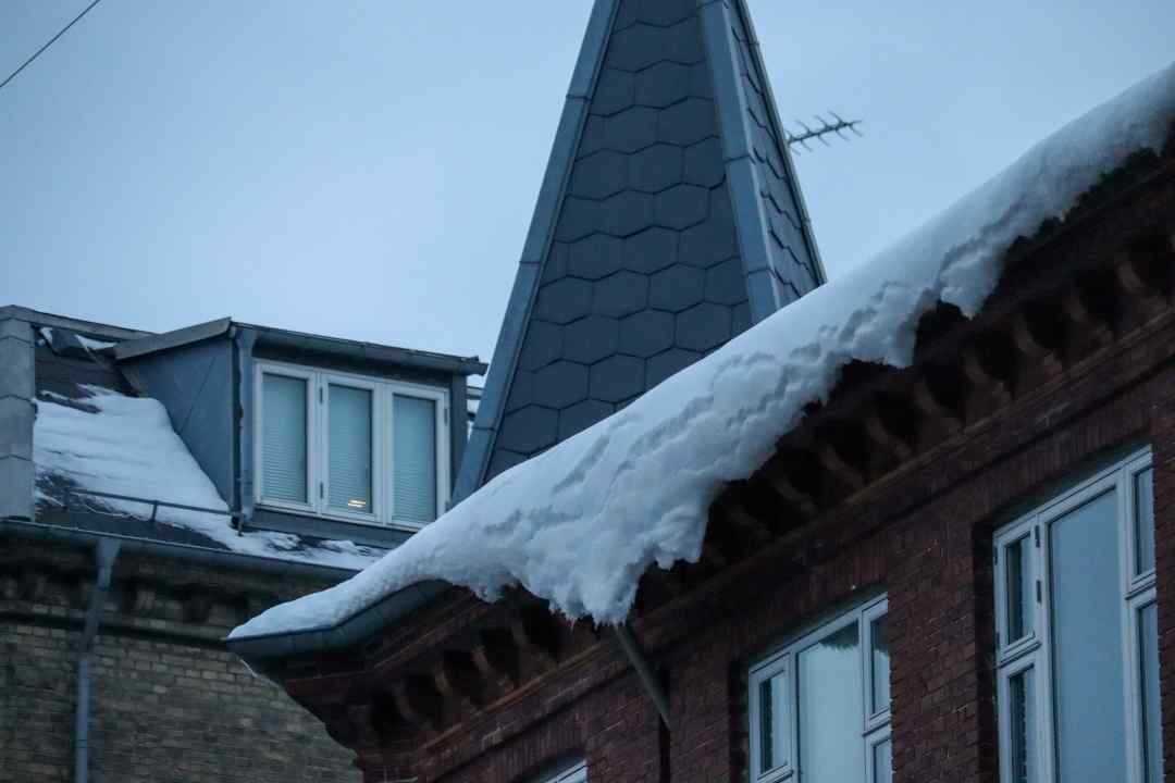 Det, der skulle have været en hyggelig lørdagstur på Frederiksberg, er sidst på eftermiddagen kammet over i en potentielt livsfarlig situation. Store mængder tung tøsne truer nu med at løsne sig fra byens tage og ramme intetanende forbipasserende.