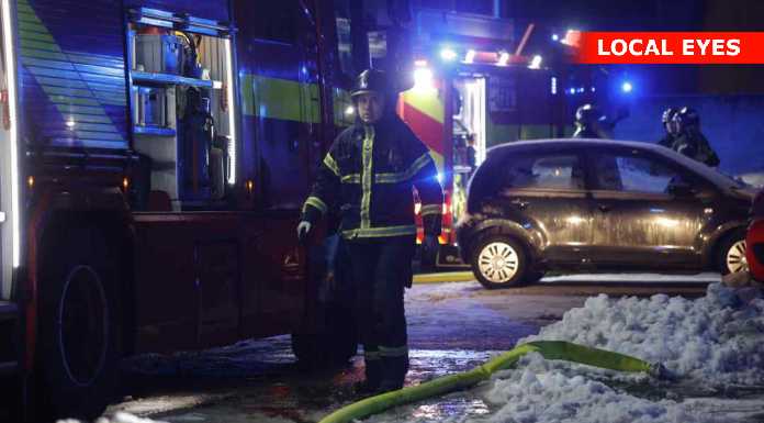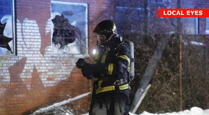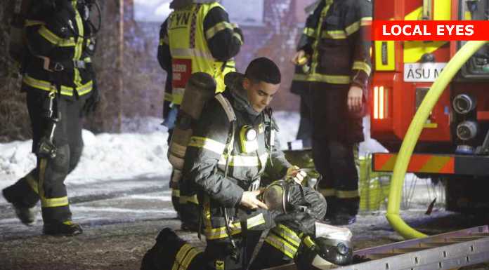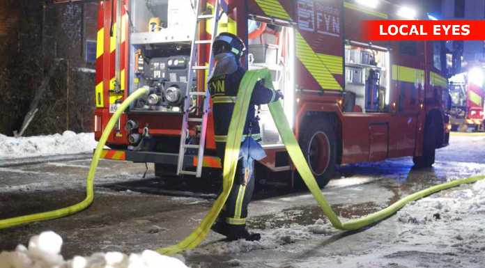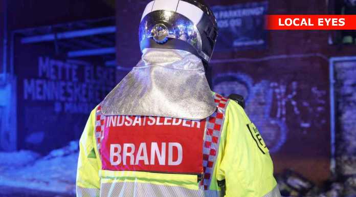 Fotografen observerede ingen synlige flammer på stedet, men der var en kraftig lugt af røg i området, som var tydelig allerede på afstand.