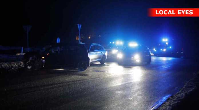 To ambulancer og en lægeakutbil er på stedet sammen med politiet, som arbejder ved uheldsstedet.