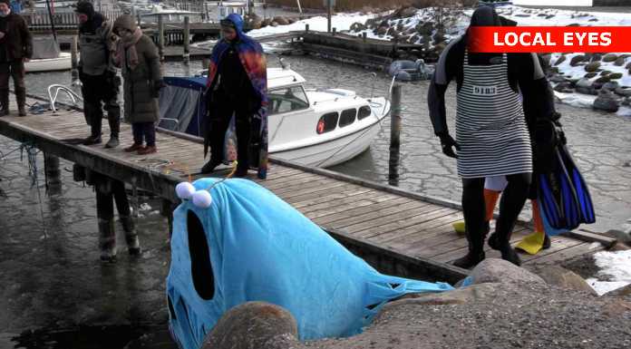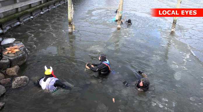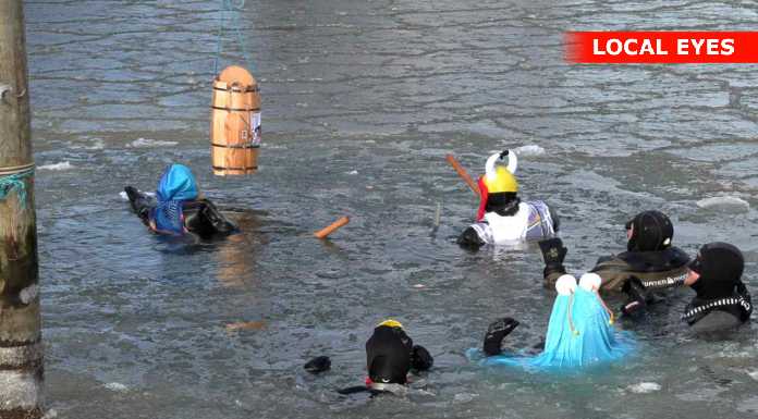 Der var mødt ca 30 personer op for at se årets kolde gys for dykkerklubben.