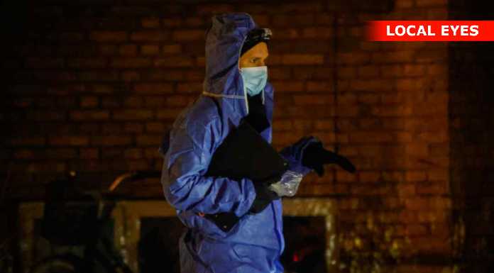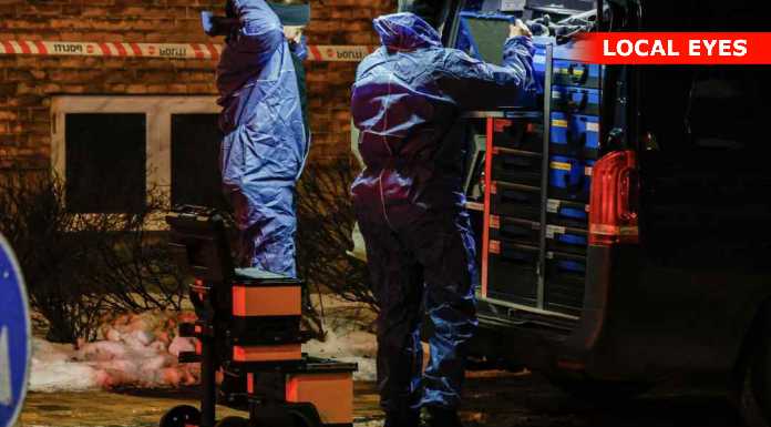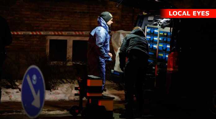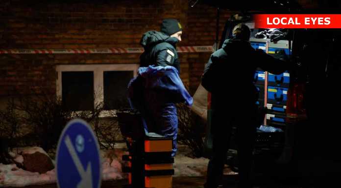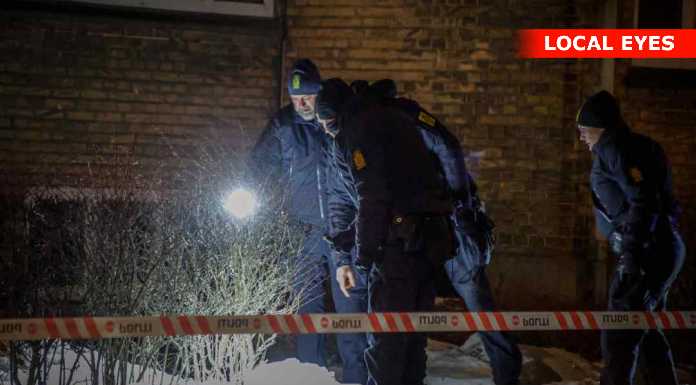 “Man kunne tydeligt se flere knuste ruder i ejendommen, og hele området var spærret af, mens politiet arbejdede koncentreret omkring den ene opgang.”