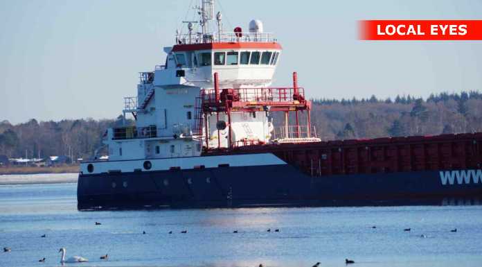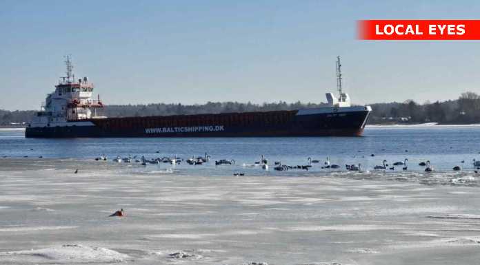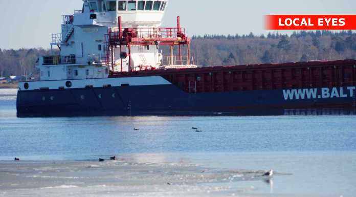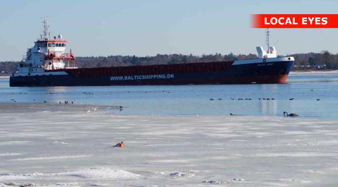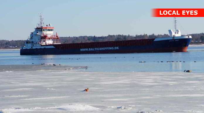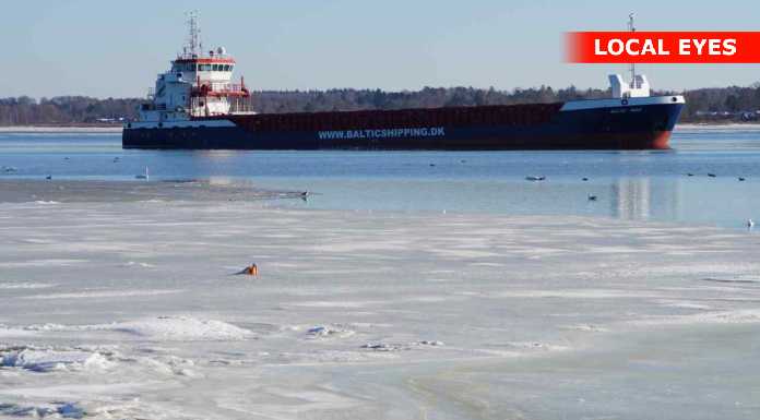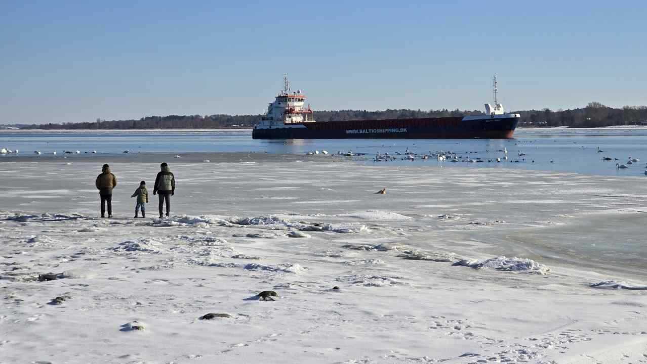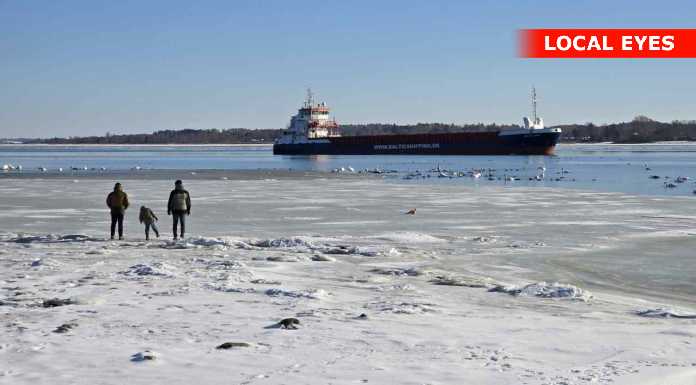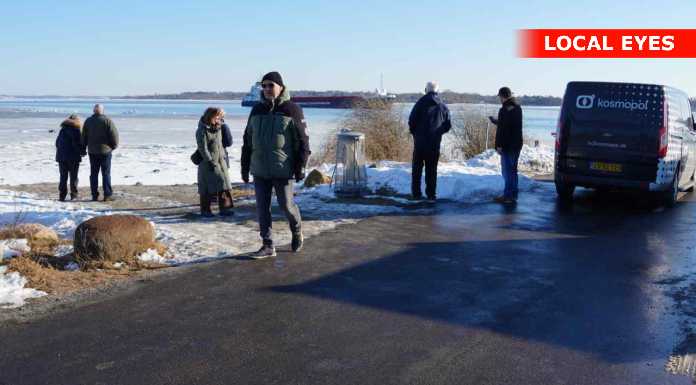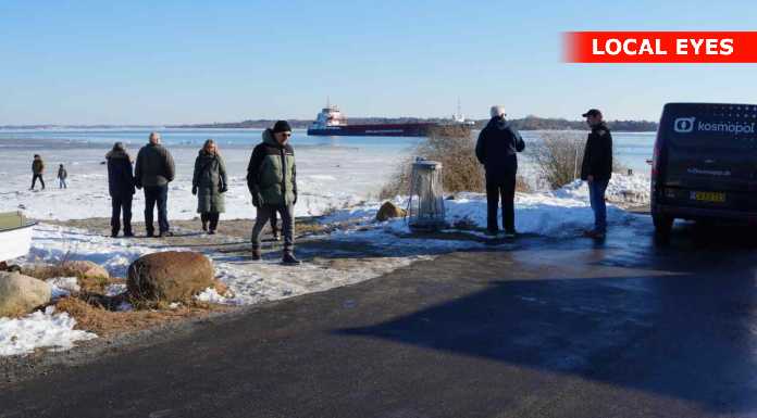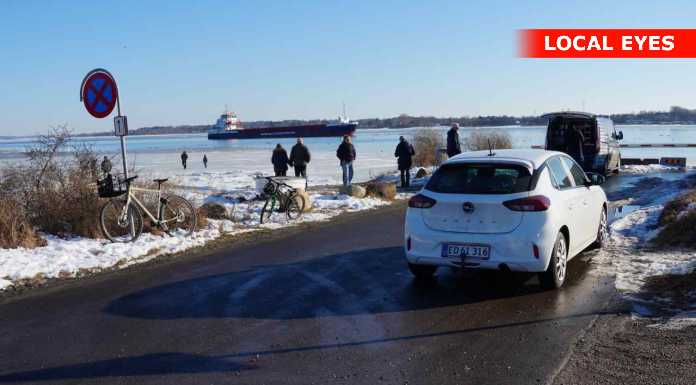 En del nysgerrige ville gerne tættere på, og gik derfor ud på isen mellem stranden og det grundstødte fartøj. Det er næppe den klogeste ting, sådan som temperaturerne svinger for tiden – sammen med at der er strøm i vandet.