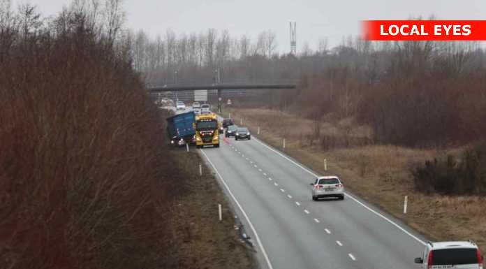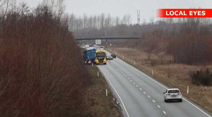 Det er uvist, hvordan lastbilen endte i grøften, og om der er sket personskade i forbindelse med hændelsen.
