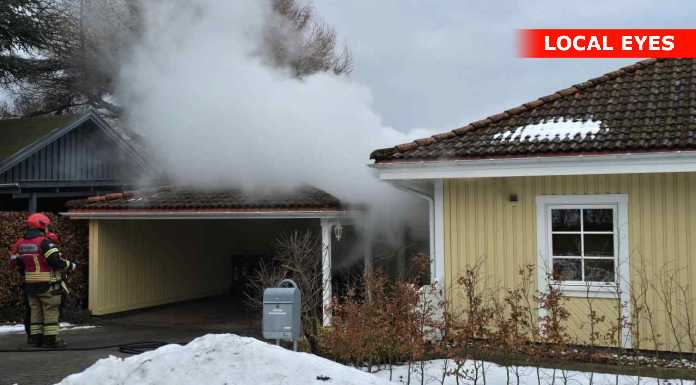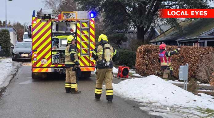 Der stod en kraftig røgfane ud af en luftventil i taget, formentlig var det noget af årsagen til at villaen ikke endte i flammer inden Gribskov Beredskab’s brandkøretøjer nåede frem til adressen kort efter.
