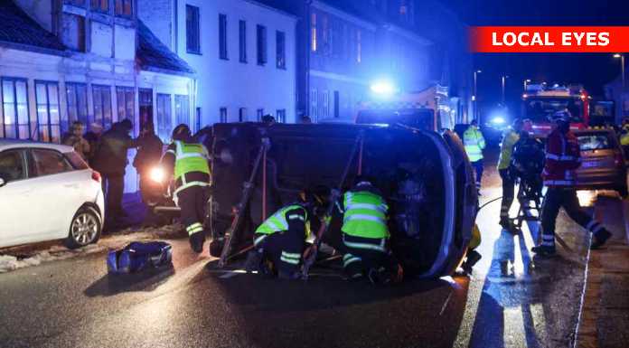 Overfor Helsingør Dagblad oplyser vagtchef David Eckert at en kvinde måtte reddes ud af sin bil som lå på siden.