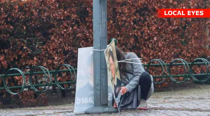 ​Kapløbet om de bedste pladser i lygtepælene er benhårdt, og vejret lod ikke til at lægge en dæmper på aktiviteten. Med strips og stiger i højeste gear kæmper de frivillige nu mod både uret og de våde elementer for at sikre deres kandidat den mest synlige placering i gadebilledet.