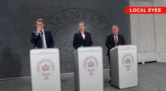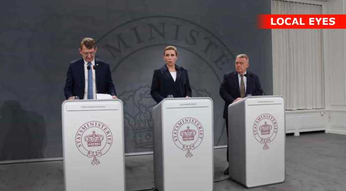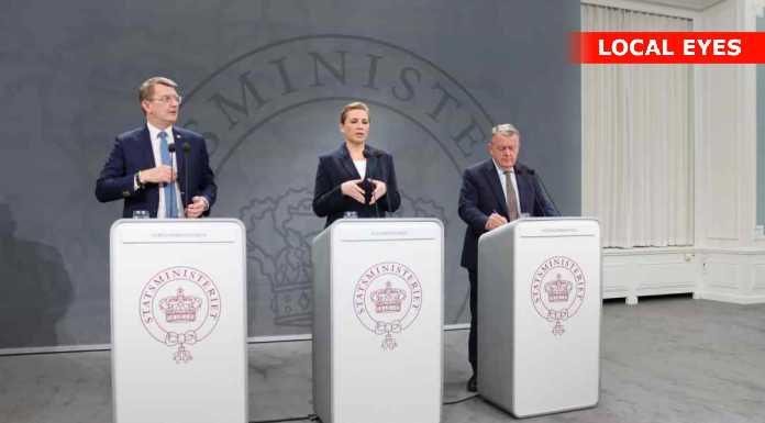 På pressemødet deltager statsminister Mette Frederiksen (Soc.dem.), vicestatsminister og forsvarsminister Troels Lund Poulsen (Venstre) og udenrigsminister Lars Løkke Rasmussen (Mod.).