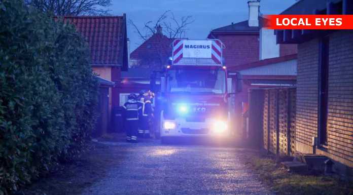 Ved beredskabets ankomst kunne man se gløder stige op fra skorstenen.