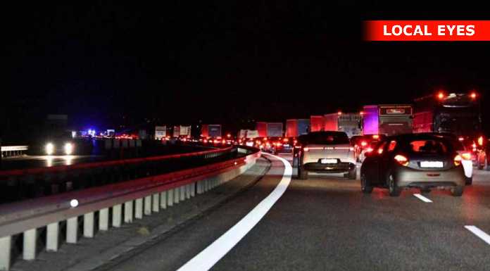 Samtidig opstod der massiv kø på strækningen, hvor kun ét spor var åbent på den ellers tresporede motorvej.