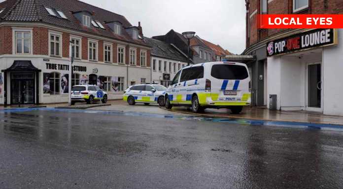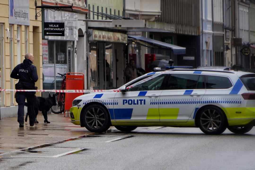 VEJLE: Et større opbud af politi på Vestergade i Vejle.