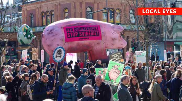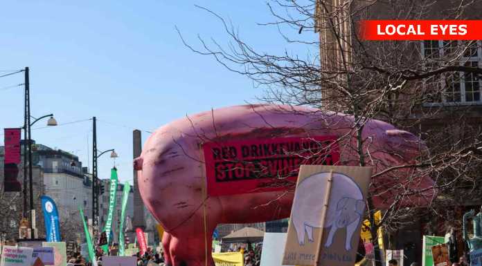 Der demonstreres for grises forhold under parolen – Vi vil have et svinevalg på tirsdag.