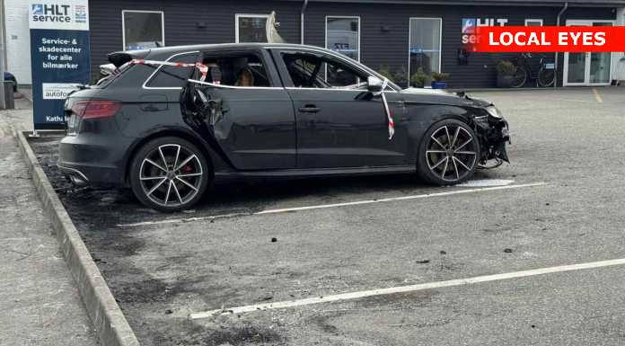 Sønderjylland : Brand og redning rykkede natten til mandag kl.01:05 ud til melding om “bygningsbrand industribygning” men det viste sig stedet at dreje som om 2 biler som stod i flammer ved HLT Service på Kathale i Aabenraa.