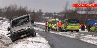 Glatføreulykke: Minibus med 7 personer kørte galt