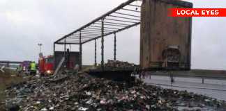Lastbil brød i brand på motorvej