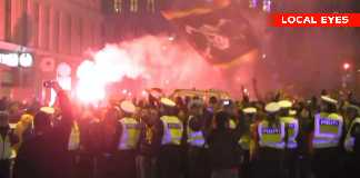 Galatasaray fans på vej mod Parken