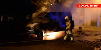 Varevogn sat i brand med benzin