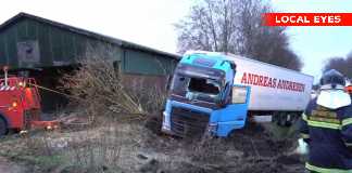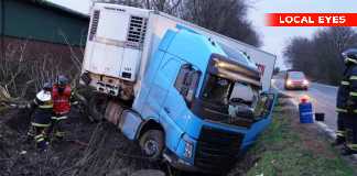 Chauffør lettere kvæstet – lastbil kørte i grøften